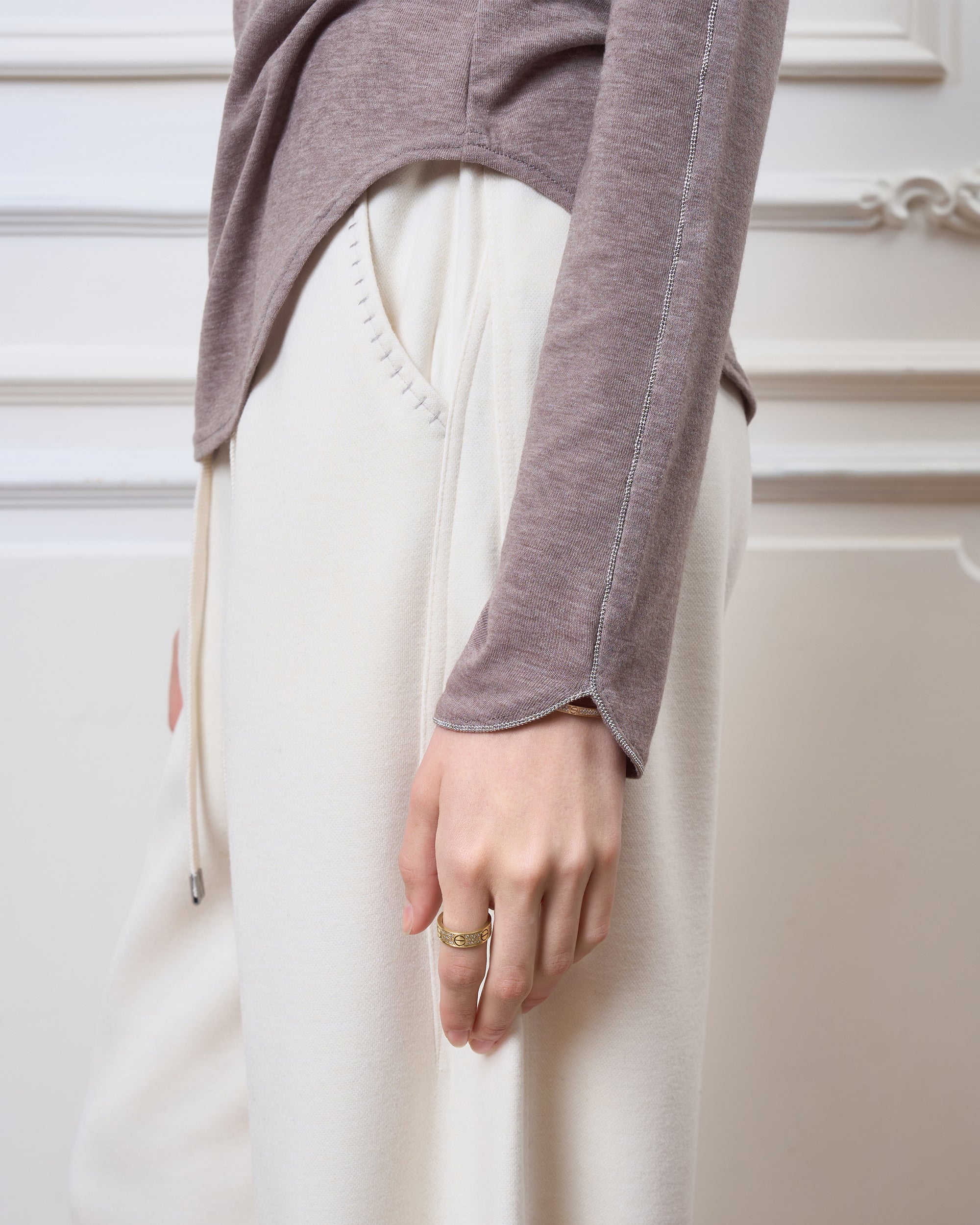 Metallic Beaded Stitch Detailing Along Edges