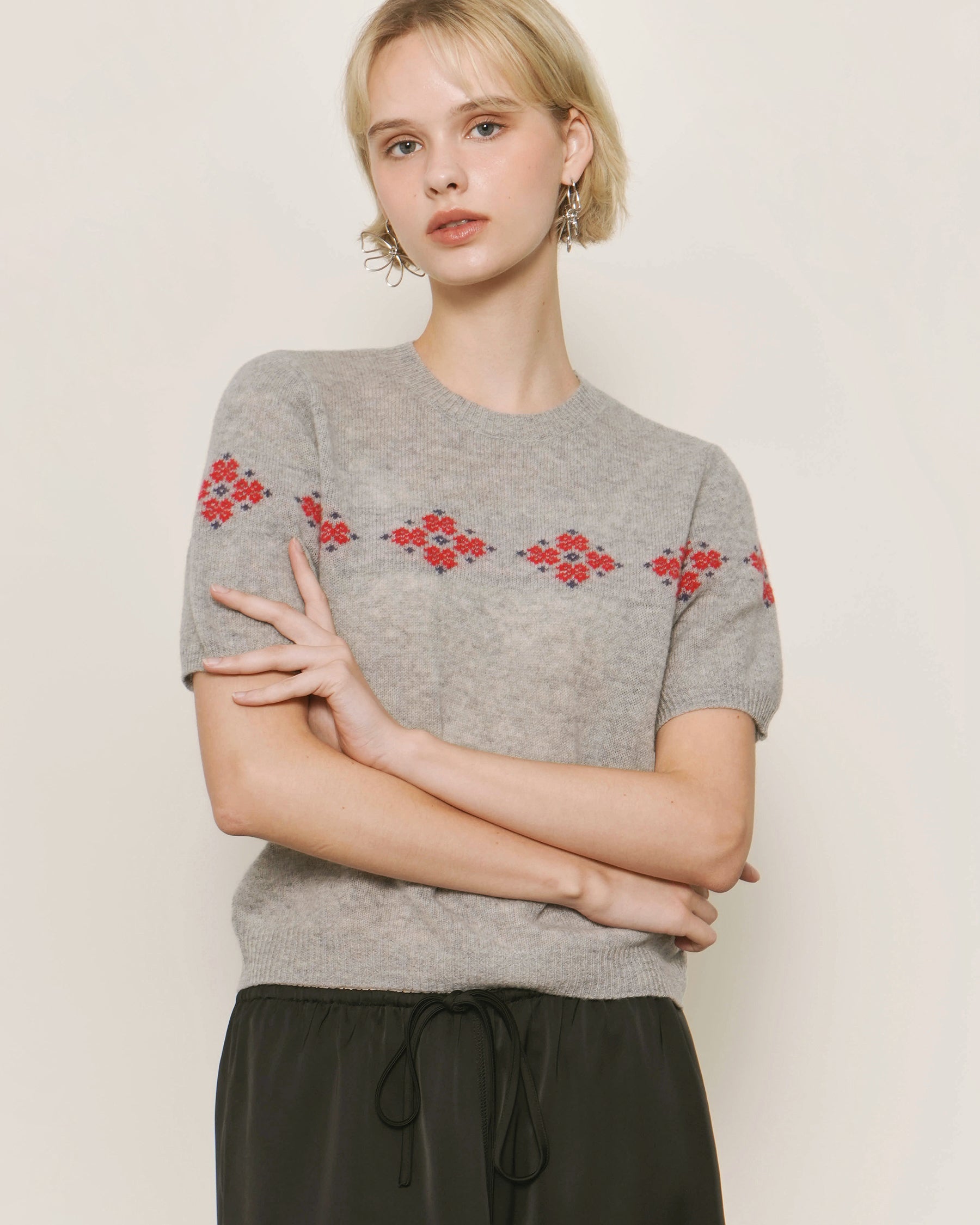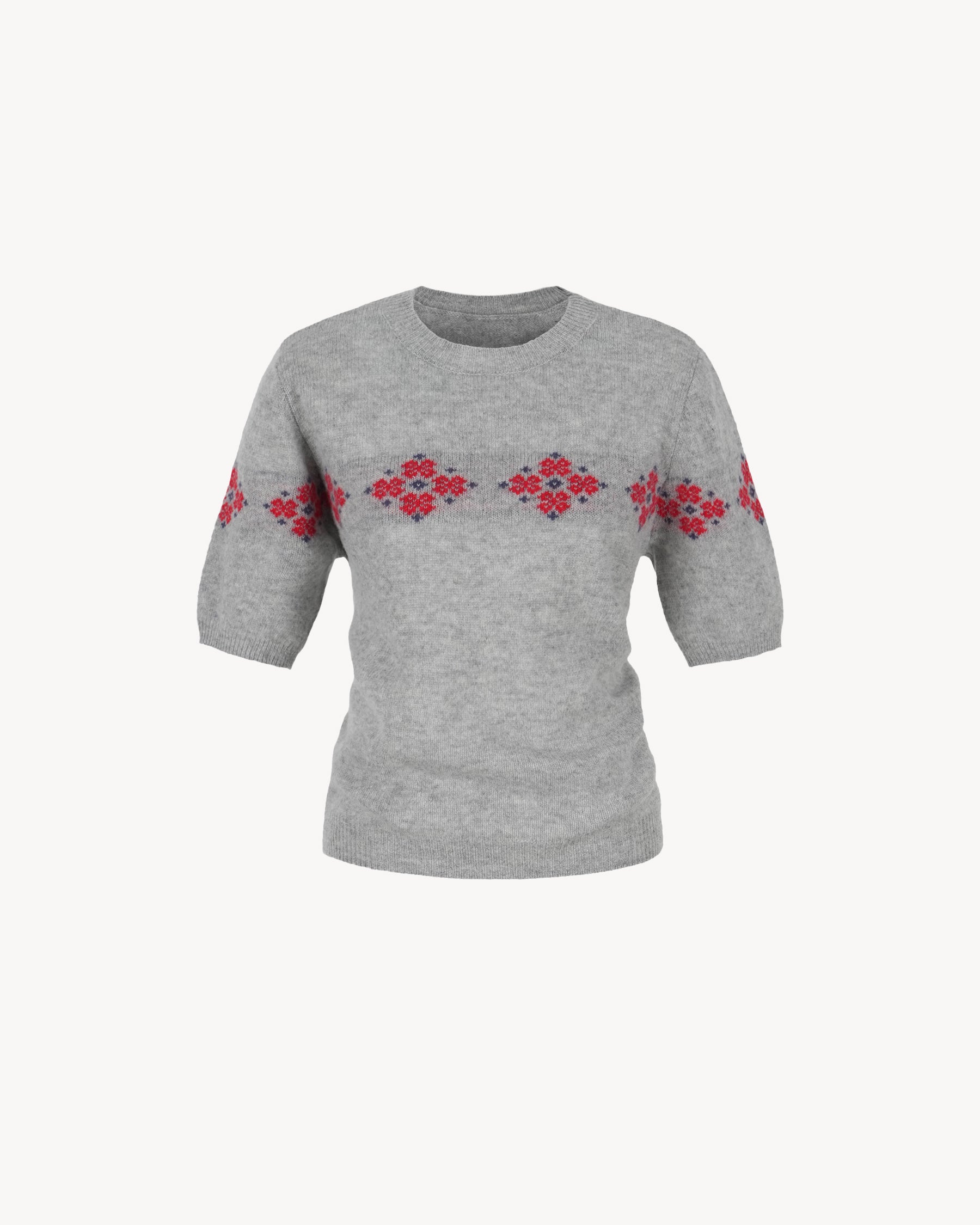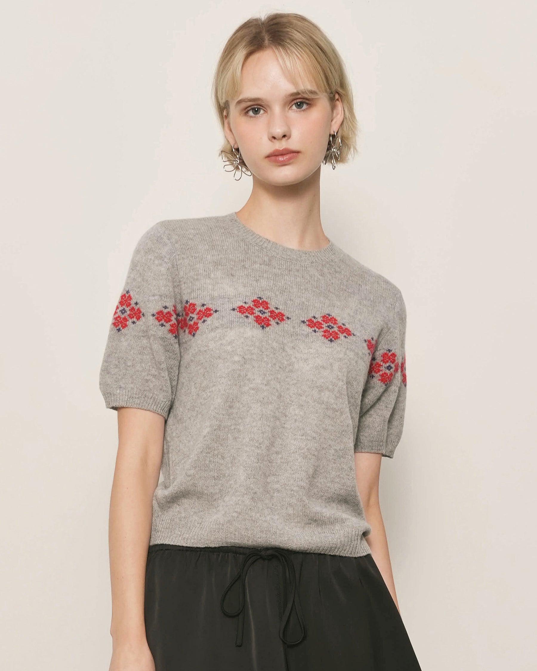 Intarsia Floral Motif at Chest and Sleeves