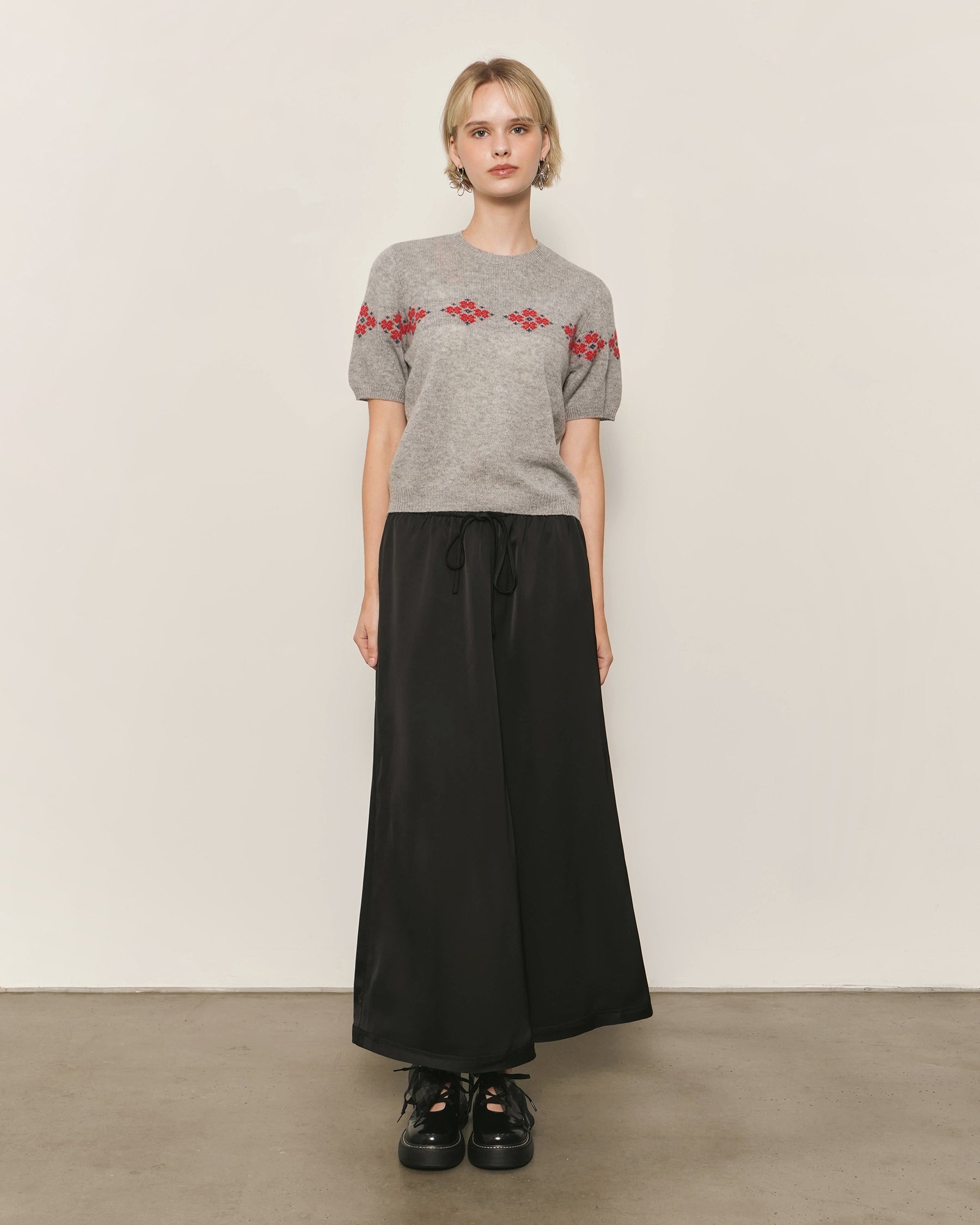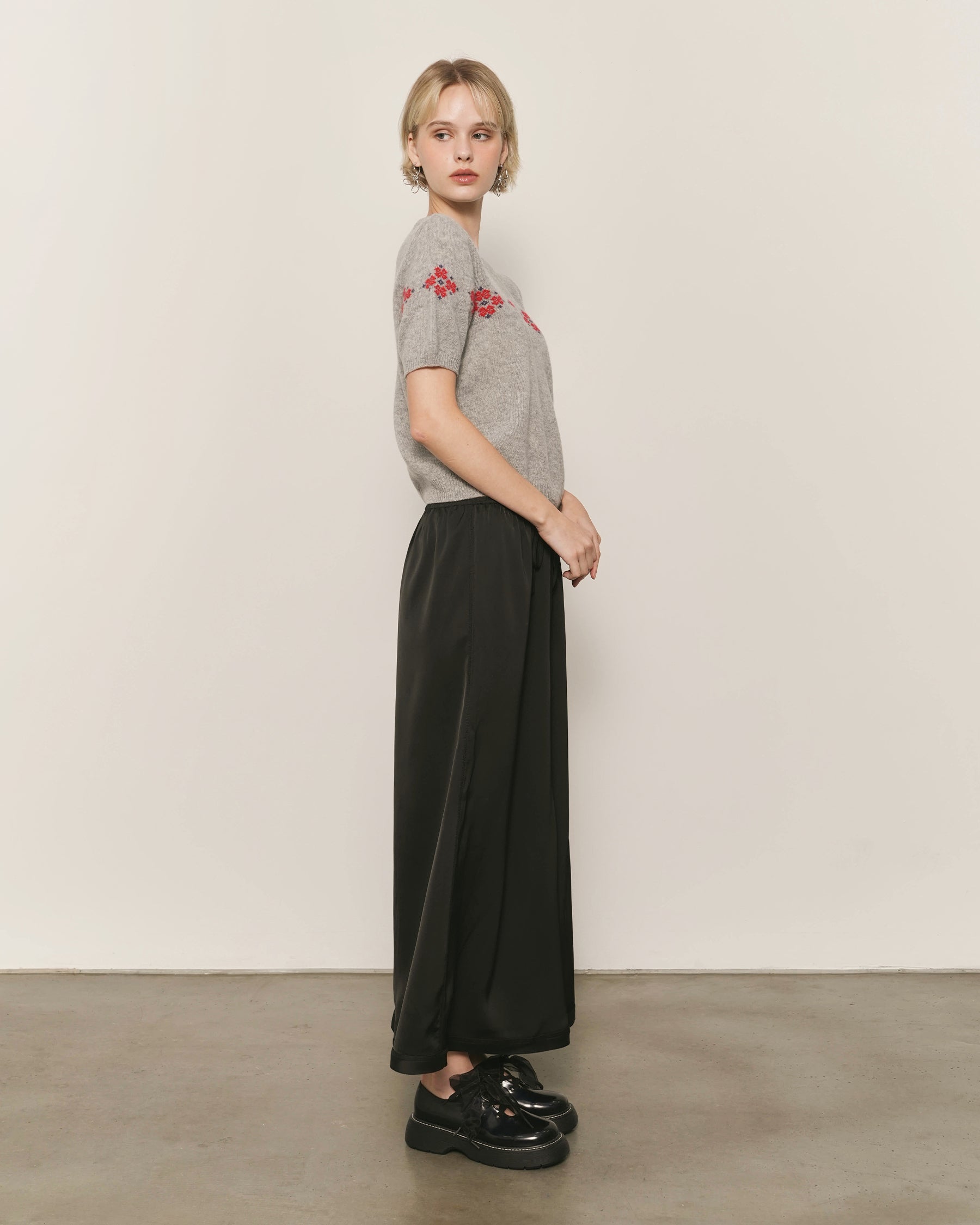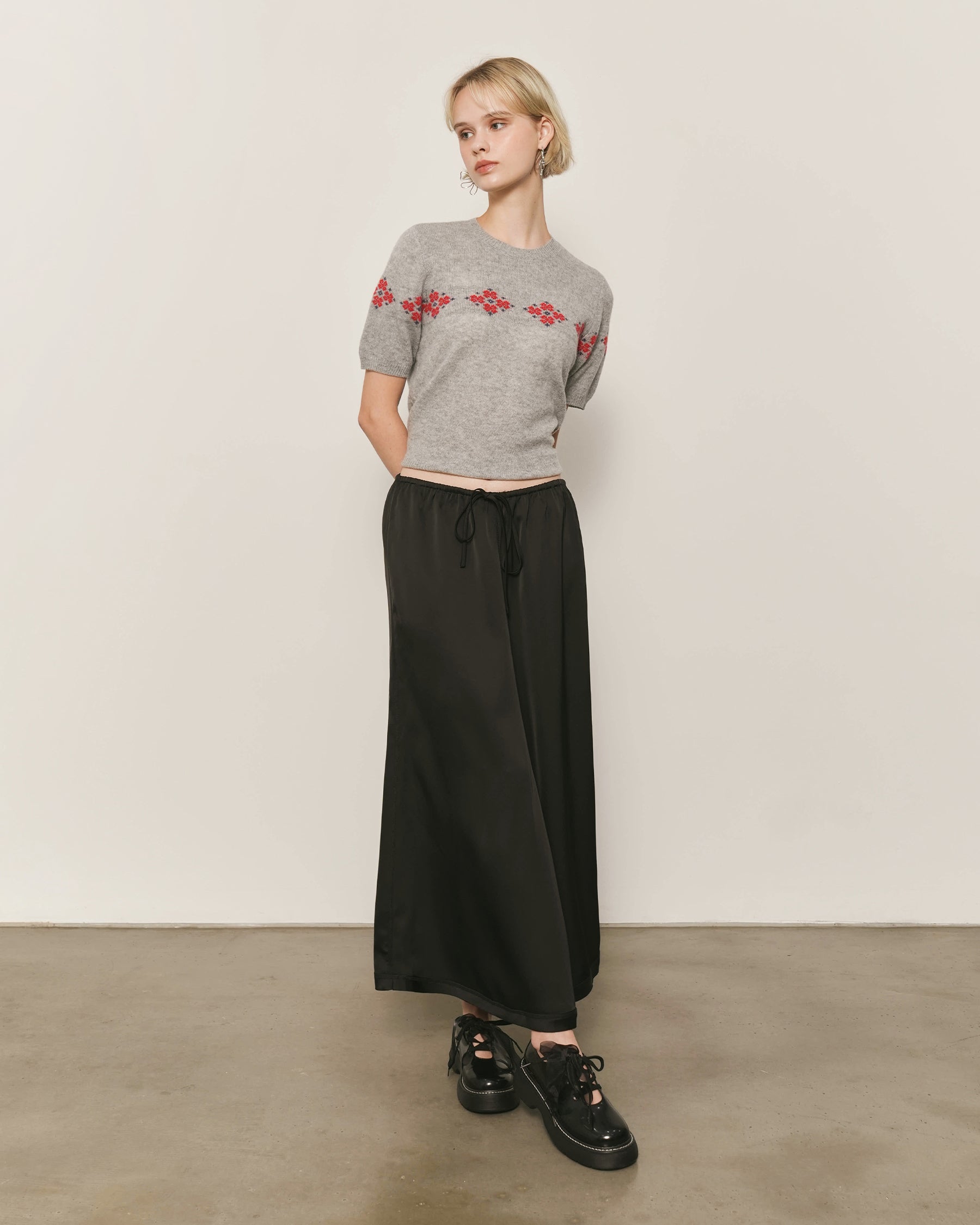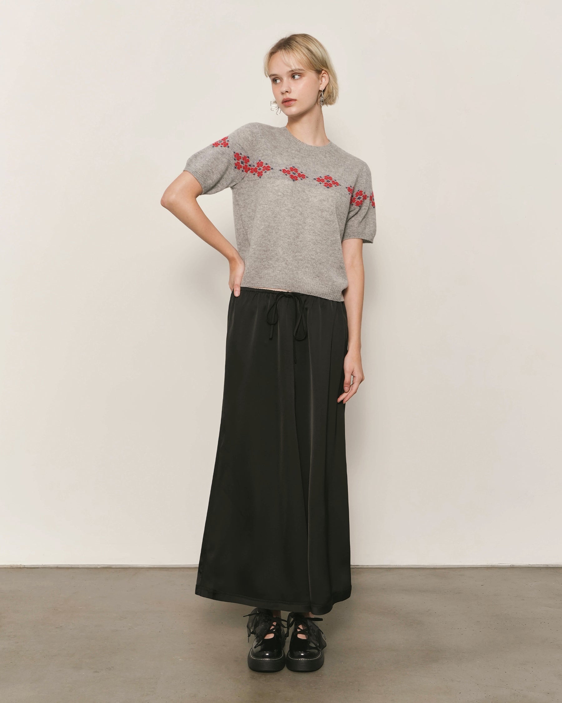 Intarsia Floral Motif at Chest and Sleeves