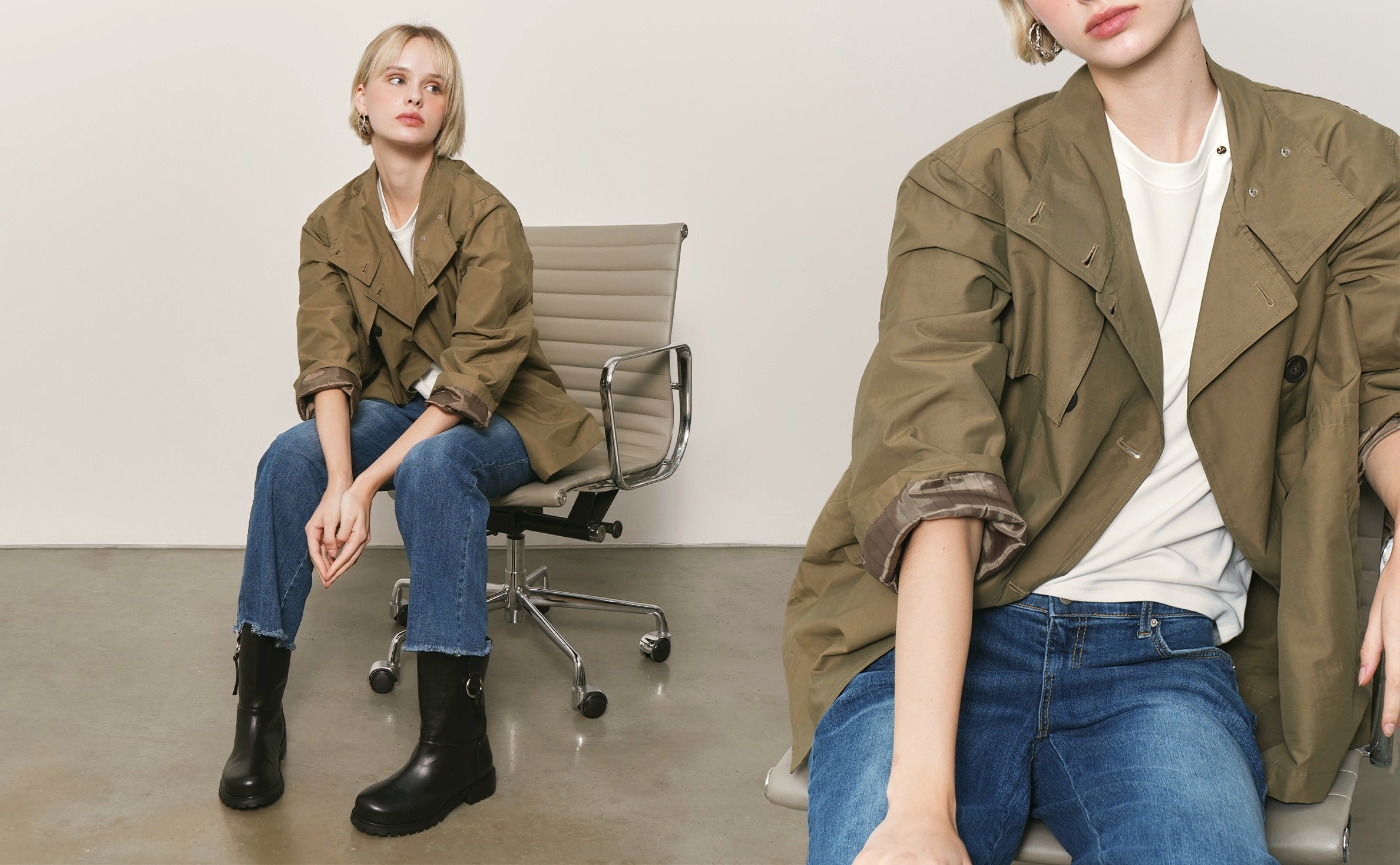 Whether in washed grey or classic denim, it carries a modern edge that feels both relaxed and refined.