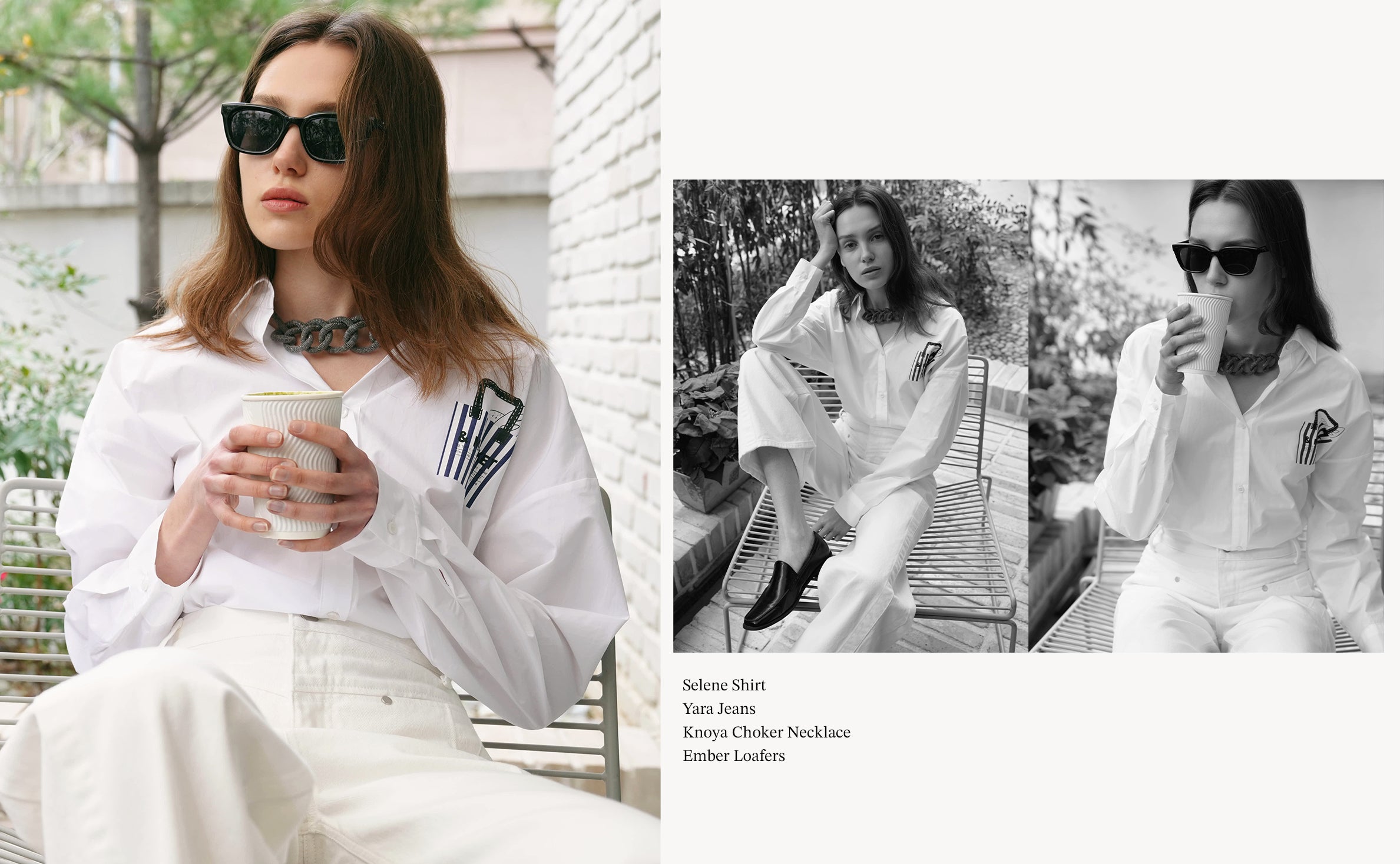 Crisp shirting, bold collars, and directional jewelry—this look is for the women who lead softly, but never go unnoticed.