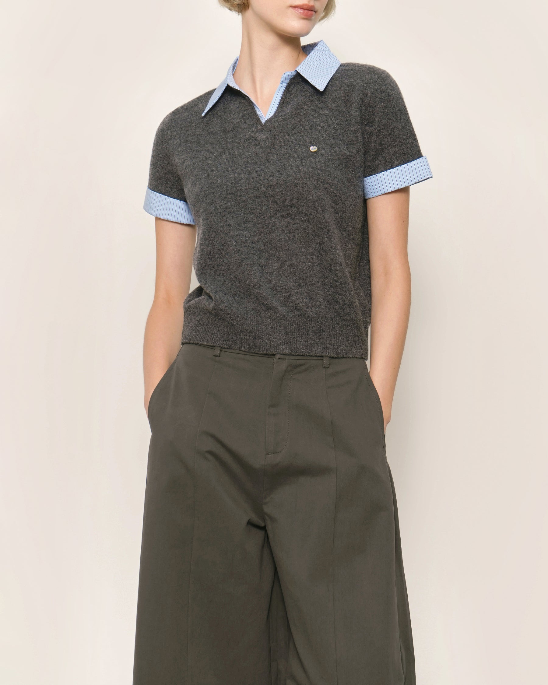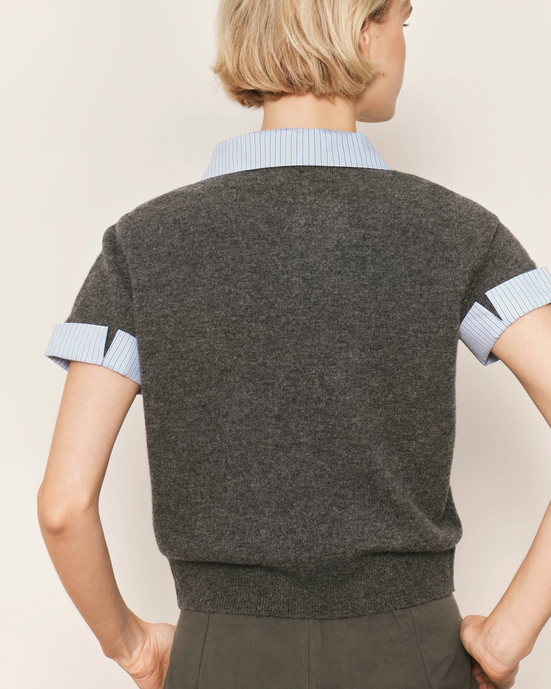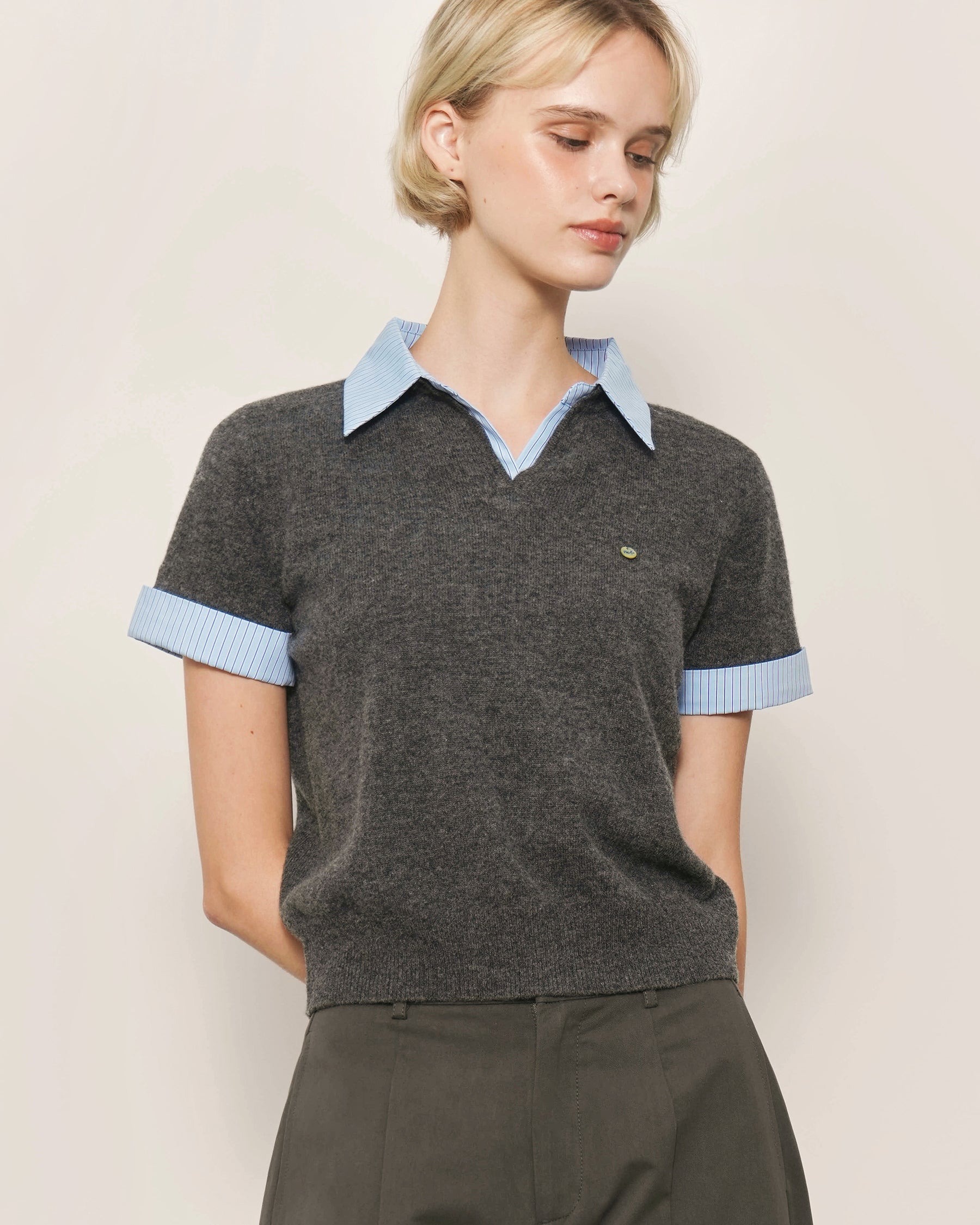 Shirt-Inspired Contrast Collar and Sleeve Cuffs