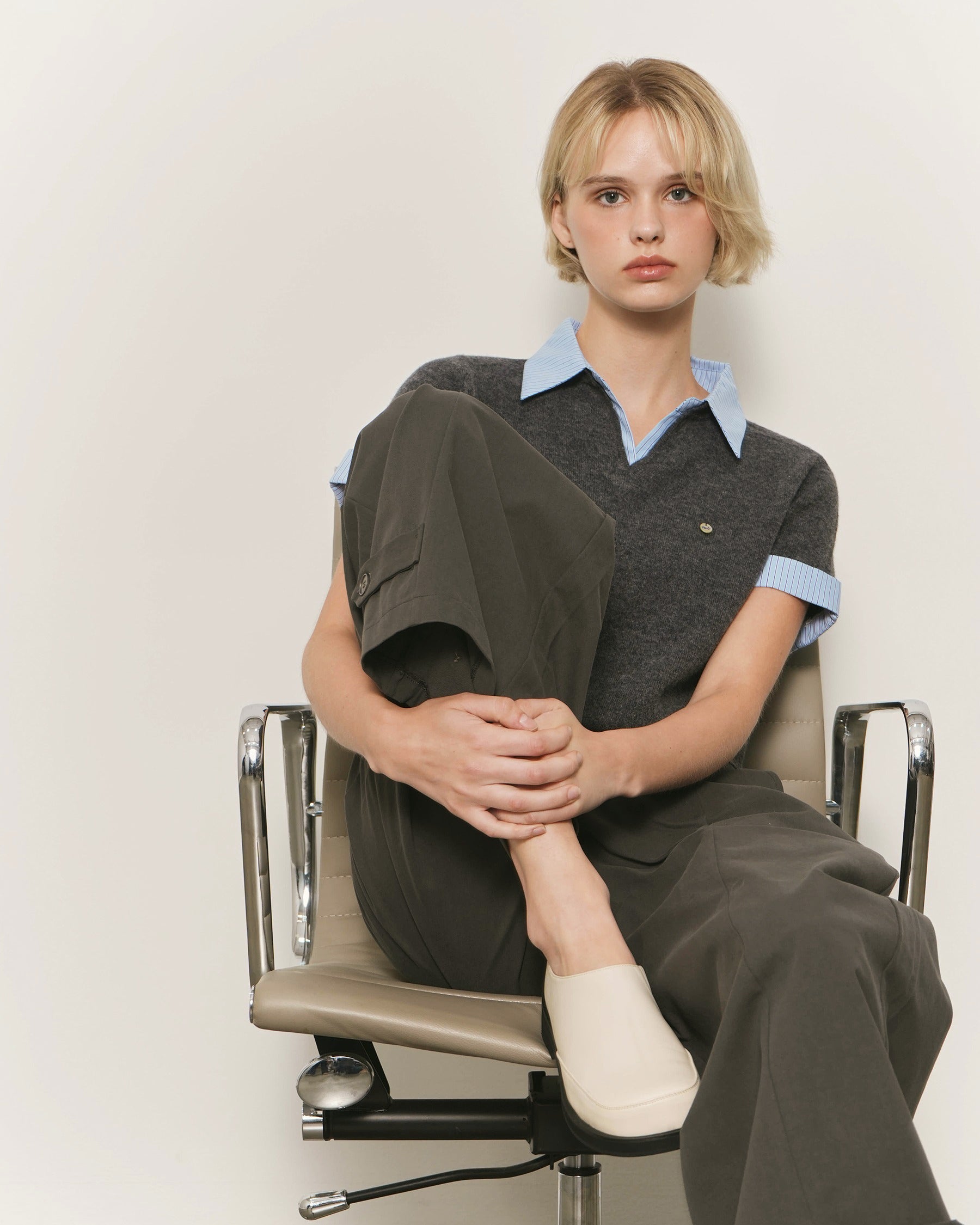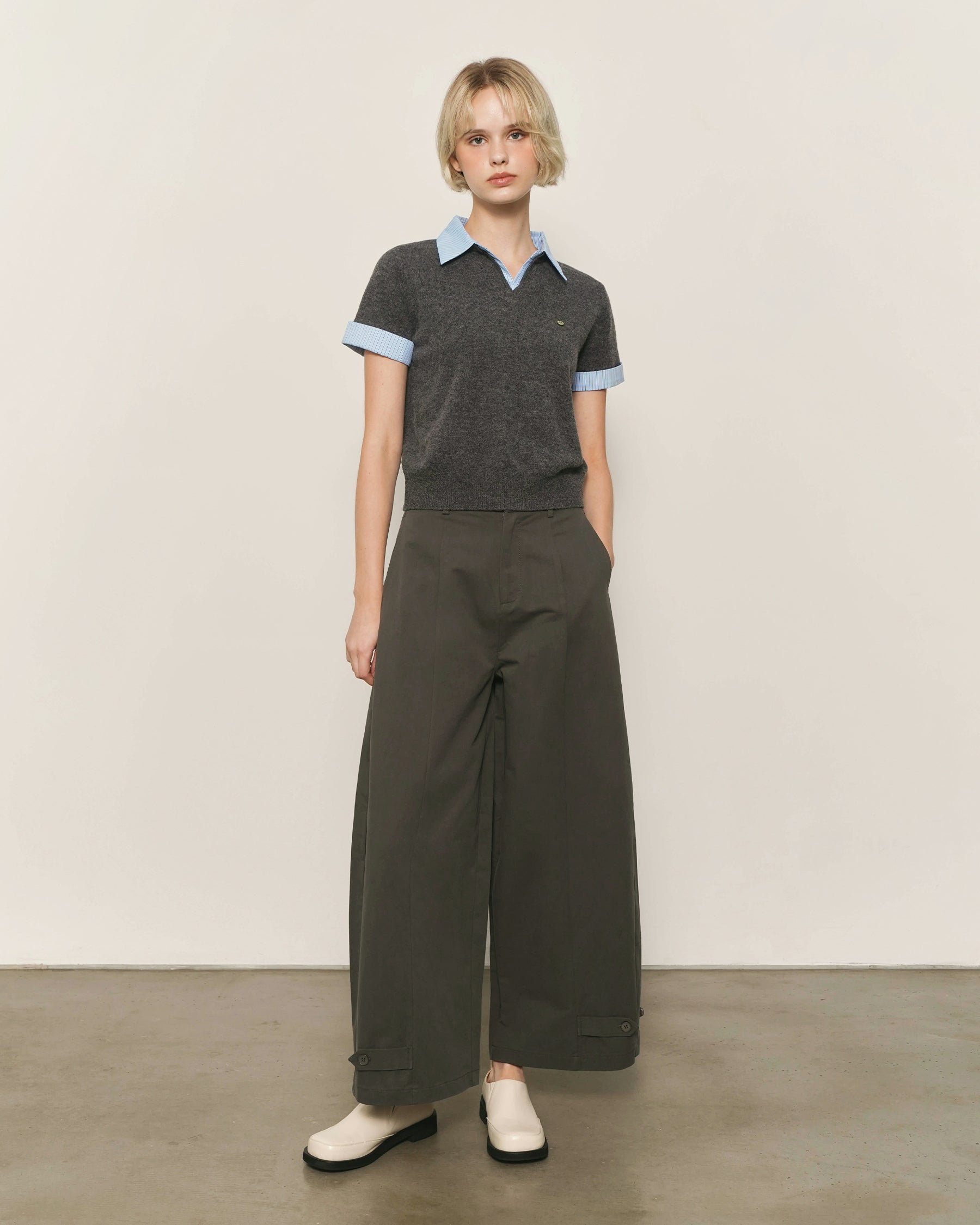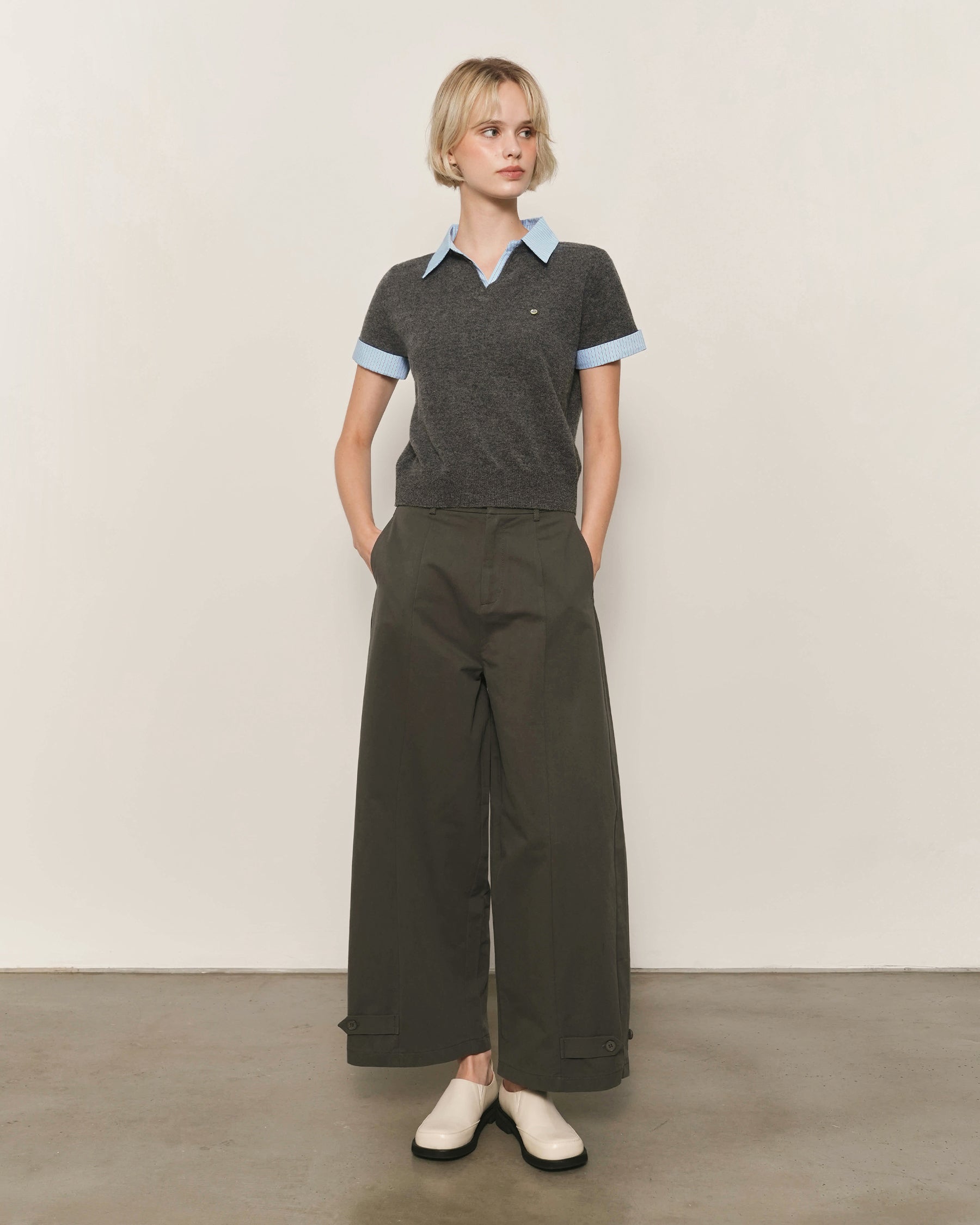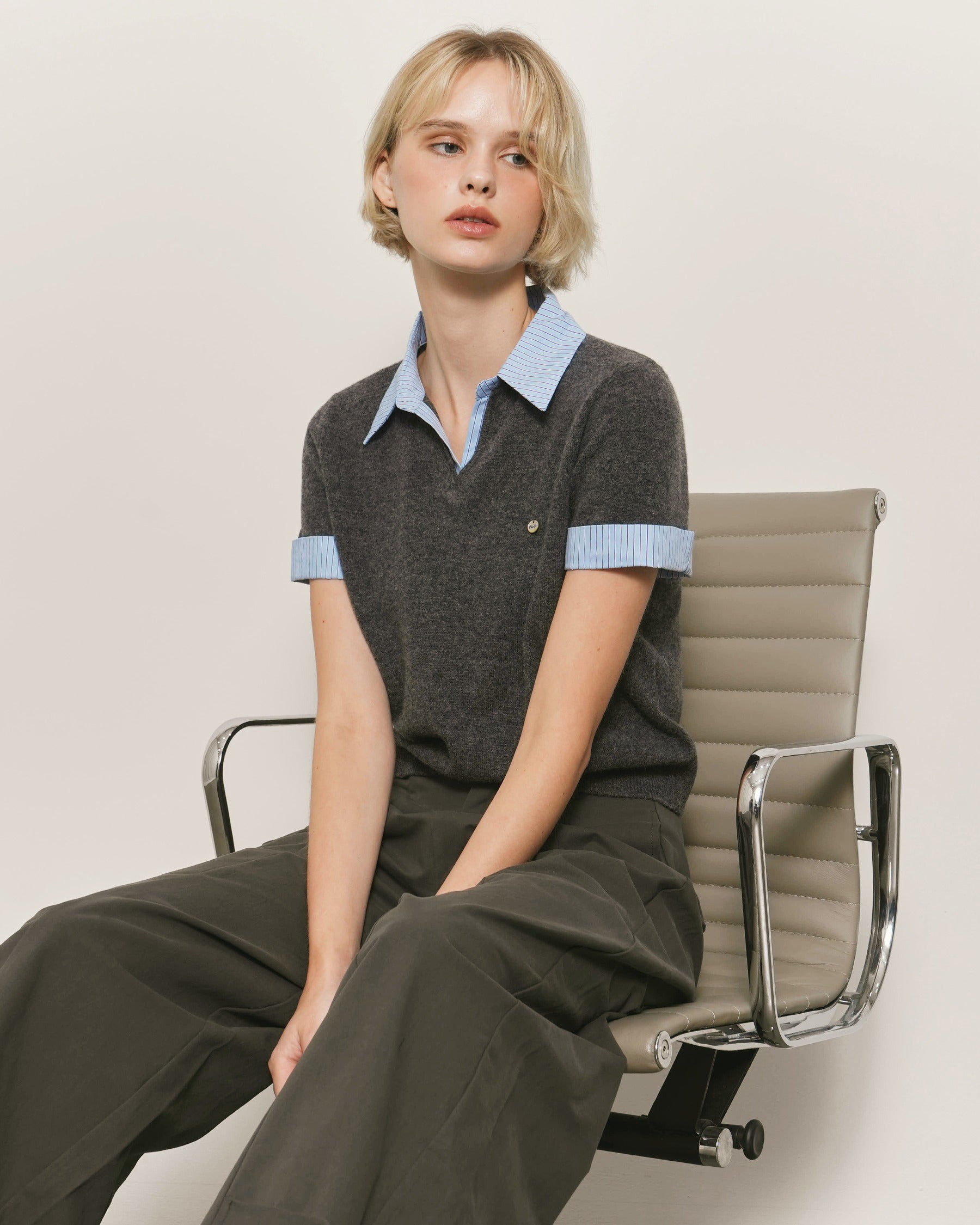 Shirt-Inspired Contrast Collar and Sleeve Cuffs
